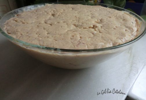 Aboqueu la pasta en un bol i tapeu-la amb paper film mentre es refreda, el paper te que estar ben ajustat per evitar que la capa superior de la pasta faci crosta.