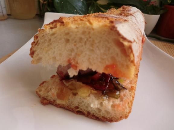 El gust que aporten les verdures al entrepà contrasta amb el de la llonganissa, al ser les verdures ambdues dolces i picantona la llonganissa. Us agradarà no ho dubteu!