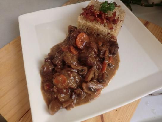 Estofat de vedella amb mostassa i brandi