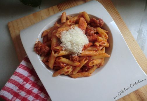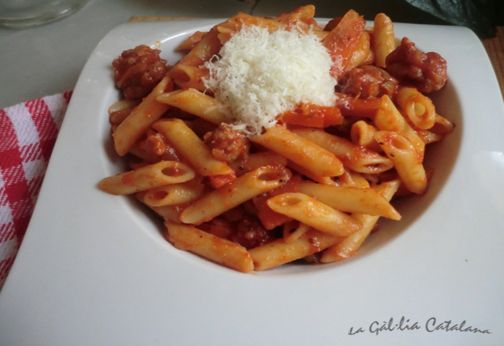 Quan el tomàquet hagi reduït quasi bé del tot, apagueu el foc i reserveu mentre poseu a bullir els macarrons els aigua amb una raig d’oli i un punt de sal. Un cop la pasta estigui cuita al gust dels comensals, l’escorreu i l’afegiu a la paella amb la salsa, torneu a engegar el foc de la paella a mig gas, rectifiqueu de sal i aneu remenant fins que la mescla agafi temperatura i la pasta el gust de la salsa, un cop servida i just abans de posar-li el formatge ratllat, podeu posar-hi una mica més de pebre per fer-la ben rabiosa.