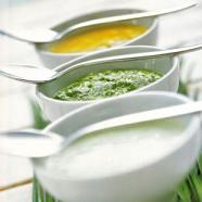 Repetir el procés amb la resta de la massa. Reservar. Barrejar amb la batedora el iogurt i el mató fins que tingui consistència llisa. Afegir les herbes picades i remenar-lo amb una cullera.