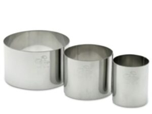 També faran falta dos motlles per a forn, en el nostre cas hem fet servir dos cèrcols de pastisser com els de la foto adjunta que caldrà folrar per baix per que no perdin el líquid. També podeu fer servir motlles tipus soufflé