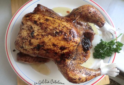 Agafeu un pollastre sencer net i el salpebreu generosament, per dins i per fora, li poseu dins prunes, pinyons i les cebetes de platillo. El poseu en una plata de forn amb un bon raig d’oli i l’introduïu al forn a uns 150ºC durant una 1/2 hora o 3/4, dependrà de la mida de la peça, per tal començar la cocció.