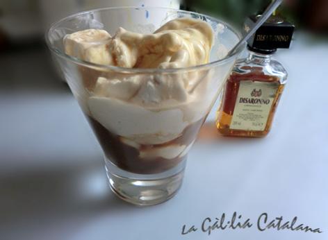 Posar les boles de gelat de vainilla a un got o copa, les gotes de Amaretto, i el cafè de Nespresso què ens agradi. La meva recomanació es la un gust intens i per últim per decorar i donar-li un punt cruixent amb uns grans de cafè.