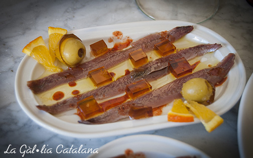 Avui fem una mica d’alquímia, agafarem vermut i el solidificarem per preparar l’aperitiu, partint de Vermut Espinaler aconseguirem una gelatina que recorda molt al àmbar, aquella resina fòssil de color entre groc i taronja, lleugera i dura com una pedra
