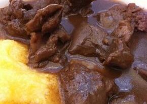 Ingredients per a 6 persones: 1,5 Kg de vedella (cuixa o espatlla) tallada a daus o tires llargues Adob: 400 ml. de vi negre 3 cullerades de vinagre de vi negre 3 cullerades d’oli d’oliva 1 pastanaga, picada 1 ceba