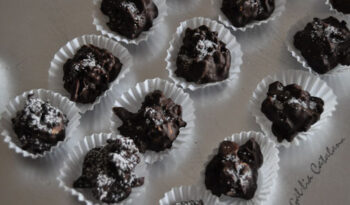 Ingredients per 20 unitats aprox.: 100 grams d’ametlles filetejades 150 grams de cobertura de xocolata 2 cullerades de gingebre confitat Elaboració: Torreu les ametlles filateadas en una paella sense cap tipus de greix. Trossegeu la cobertura i foneu-la al bany