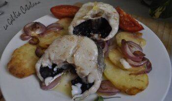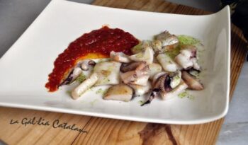 Ingredients per 3 persones: 6 calamarsos 150 grams de llonganissa / botifarra 2 cebes, 1 pel farcit i 1 per la salsa 100 grams de panses (sense pinyol) 30 grams pinyons 20 grams aprox. de pa ratllat 2 ous Sal