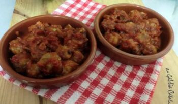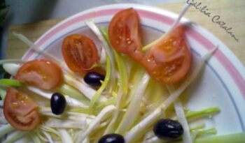 Ingredients per a 2 persones: Bacallà desalat al gust, aprox. 400 grams 1 pebrot vermell 2 tomàquets madurs Preparació: Talleu el pebrot en tires i els tomàquets per la meitat i poseu-los a fregir en una paella amb un raig