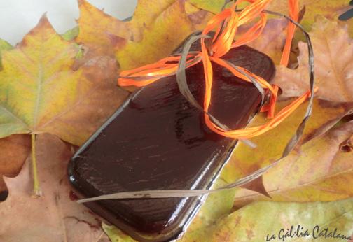 I per finalitzar torneu a posar una altra capa de gelée de cireres i la cobriu amb una capa de xocolata temperada, ja teniu els torrons a punt.